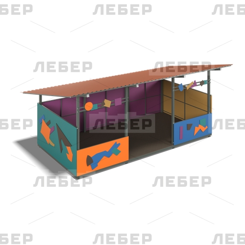 Теневой навес 3000х6000 (стены - фанера) с декоративными элементами "Конструктивизм"