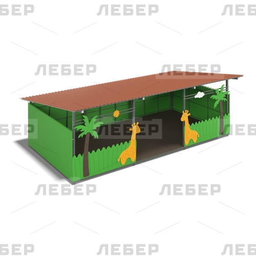Теневой навес 4000х8000 (стены - фанера) с декоративными элементами "Жирафы"