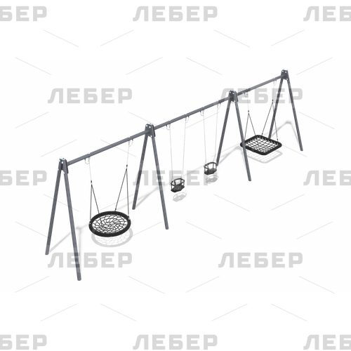Трехсекционные качели «Гнездо»-двойные-«Гнездо» на металлических опорах